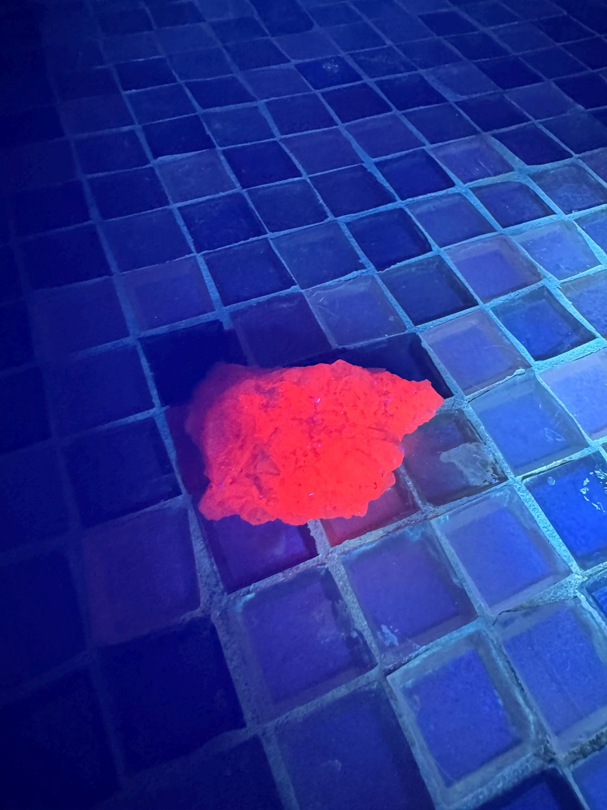 Mangano Calcite Specimen from Androvo Mine, Erma Reka, Zlatograd, Smolyan Province, Bulgaria. Beautiful pale pink color calcite that also glows pink/orange under a black light. 86.4g. Specimen is a very light pink color, would be great for any collection.